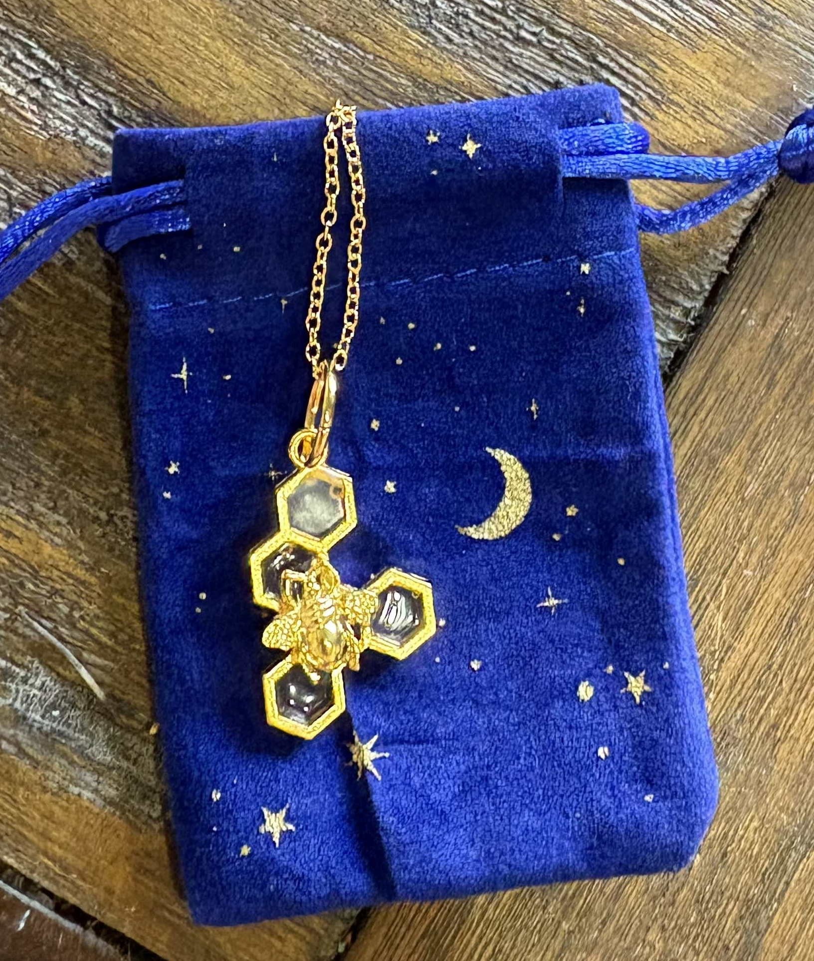 Clear resin honeycomb and bee necklace (5 honeycomb long)