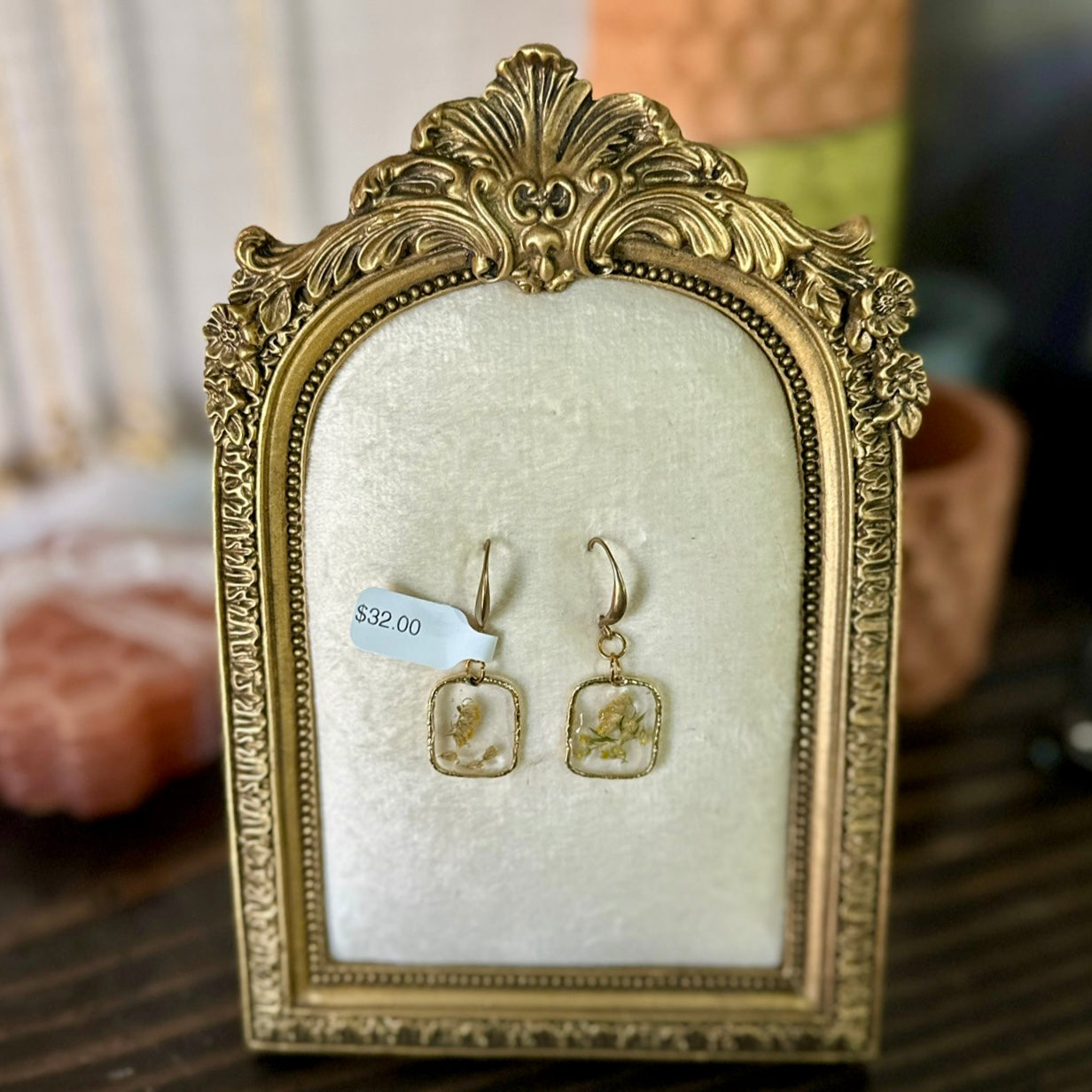 Gold-framed botanical earrings in golden (pair 1)